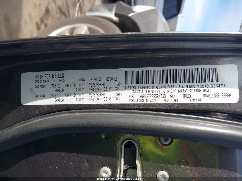 2015 RAM 1500 2015 року Бензин, 5.7, Полный привод, vin - 1C6RR7GT2FS584539 из США