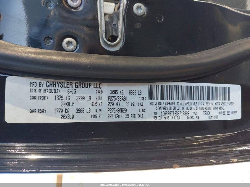 Цвет ЧерныйЦилиндры 8VIN 1C6RR6TT8DS717396Состояние СтационарноПовреждения Задняя