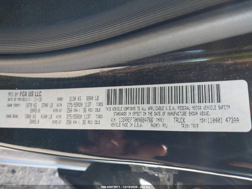 2019 RAM 1500 2019 року Бензин, 5.7, , vin - 1C6RREFT0KN684766 из США