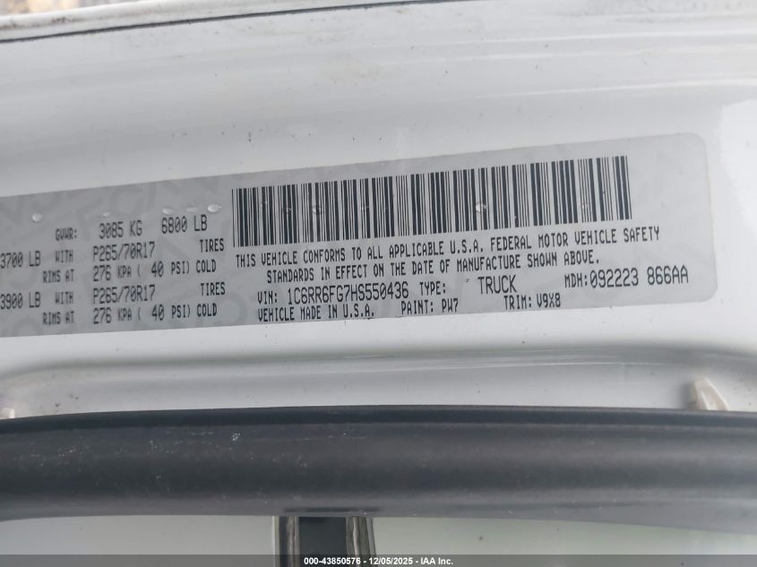 2017 RAM 1500 2017 року Бензин, 3.6, , vin - 1C6RR6FG7HS550436 из США