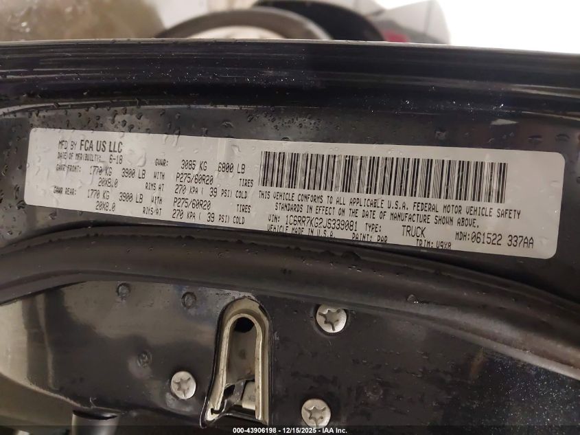 Цвет Цилиндры 6Привод Полный приводVIN 1C6RR7KG2JS339081Состояние НеизвестноПовреждения Задняя правая AutoRIA