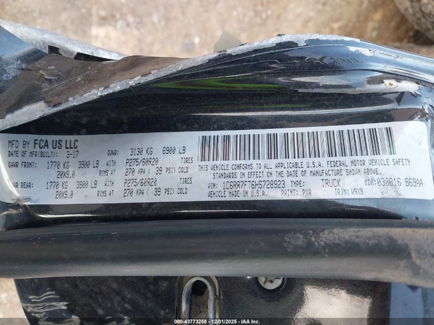 2017 RAM 1500 2017 року Бензин, 5.7, Полный привод, vin - 1C6RR7FT6HS728923 из США