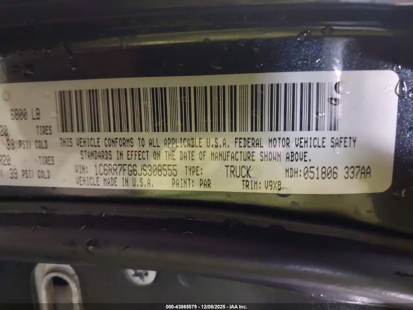 Цвет СерыйЦилиндры 6Привод Полный приводVIN 1C6RR7FG6JS308555Состояние СтационарноПовреждения Передняя или задняя AutoRIA