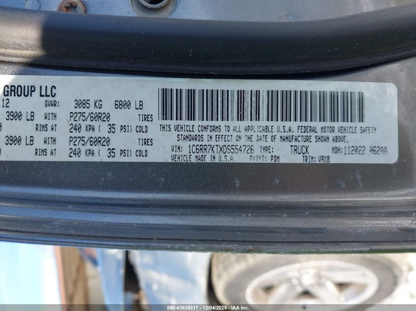 2013 RAM 1500 2013 року Бензин, 5.7, Полный привод, vin - 1C6RR7KTXDS554726 из США