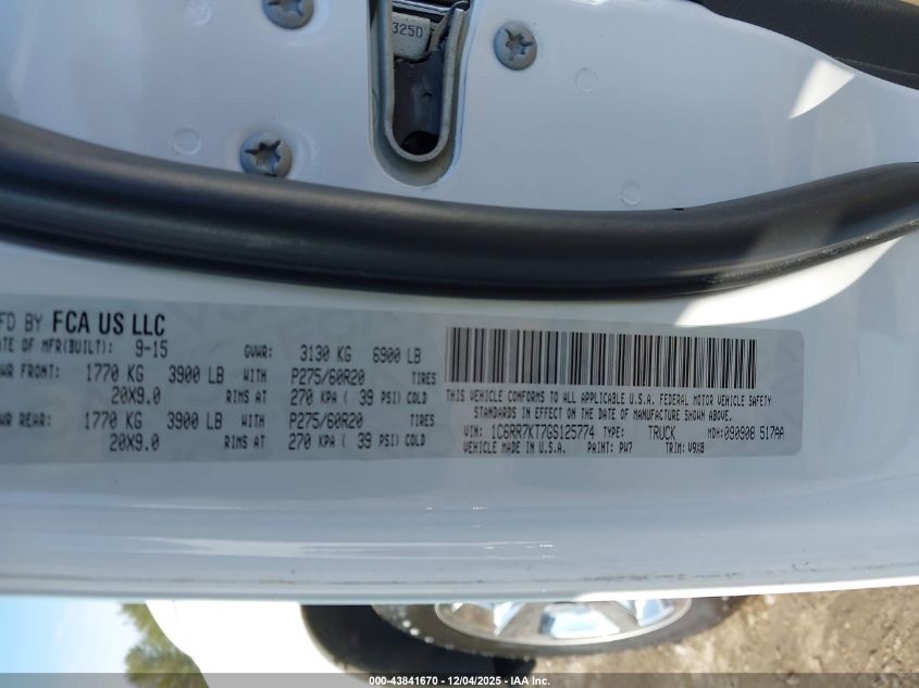 2016 RAM 1500 2016 року Бензин, 5.7, Полный привод, vin - 1C6RR7KT7GS125774 из США