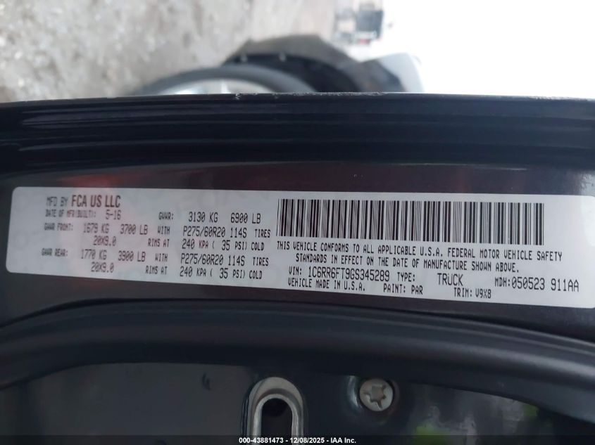 2016 RAM 1500 2016 року Бензин, 5.7, , vin - 1C6RR6FT9GS345289 из США