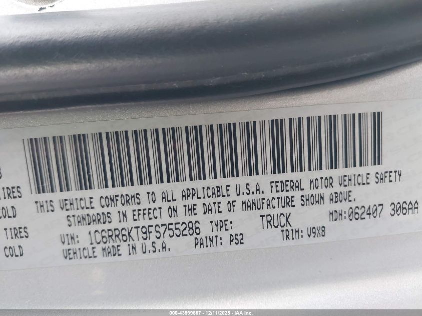 2015 RAM 1500 2015 року Бензин, 5.7, , vin - 1C6RR6KT9FS755286 из США