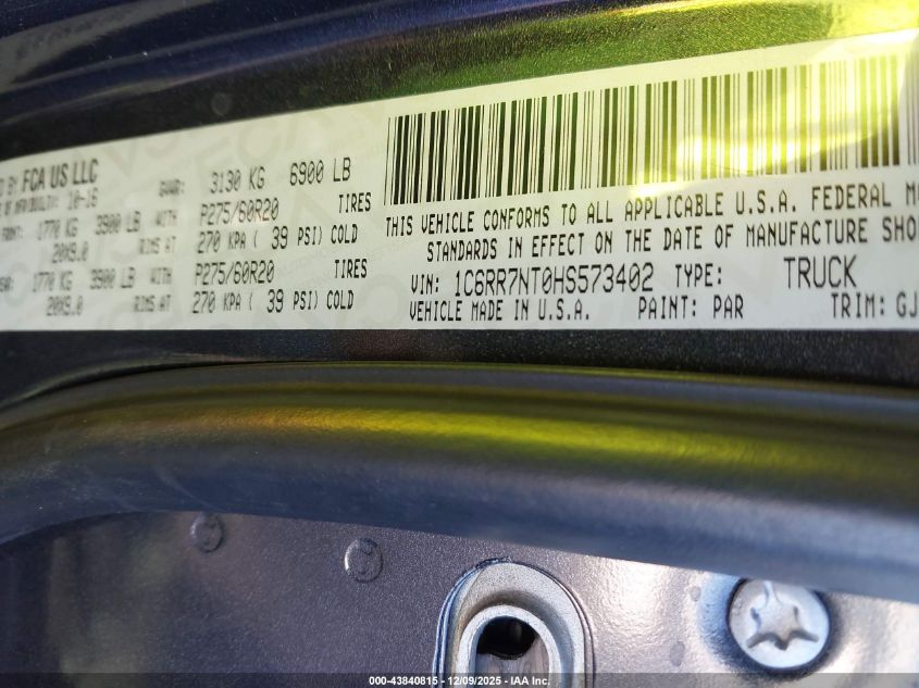 2017 RAM 1500 2017 року Бензин, 5.7, Полный привод, vin - 1C6RR7NT0HS573402 из США