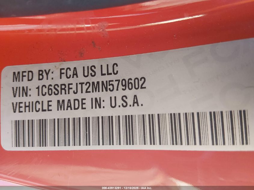 2021 RAM 1500 2021 року Бензин, 5.7, Полный привод, vin - 1C6SRFJT2MN579602 из США