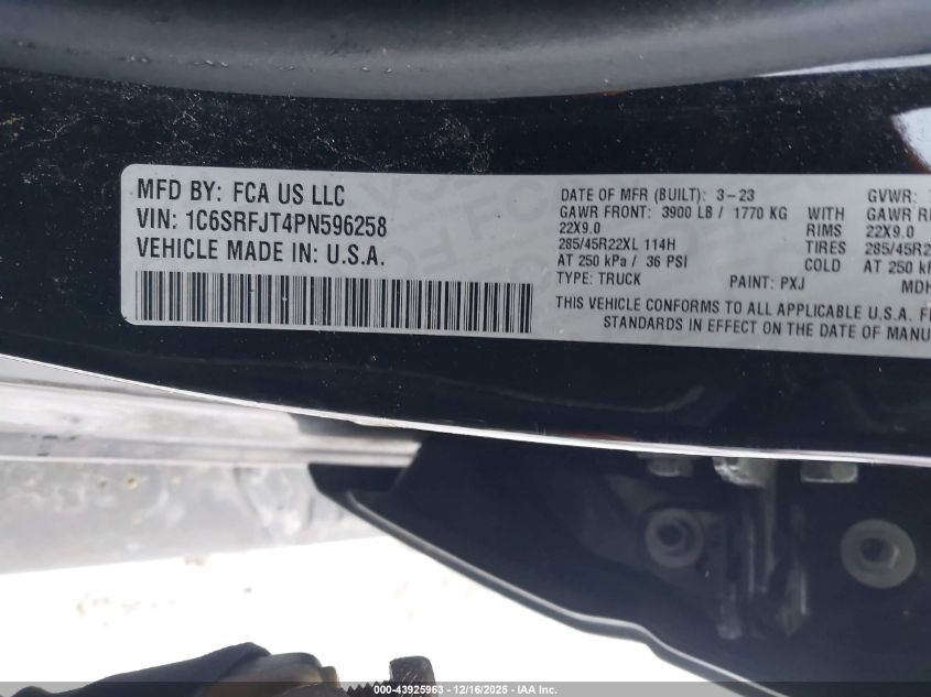 2023 RAM 1500 2023 року Бензин, 5.7, Полный привод, vin - 1C6SRFJT4PN596258 из США