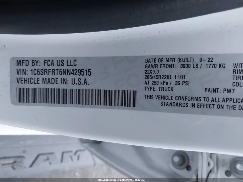 2022 RAM 1500 2022 року Бензин, 5.7, Полный привод, vin - 1C6SRFRT6NN429515 из США
