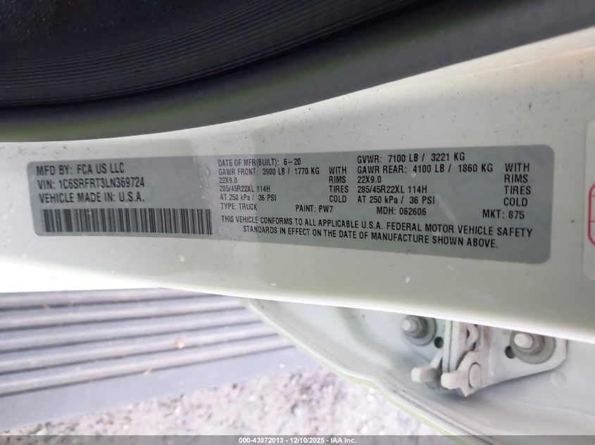 2020 RAM 1500 2020 року Бензин, 5.7, Полный привод, vin - 1C6SRFRT3LN369724 из США
