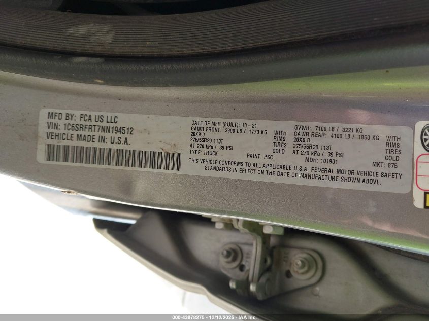 2022 RAM 1500 2022 року Бензин, 5.7, Полный привод, vin - 1C6SRFRT7NN194512 из США