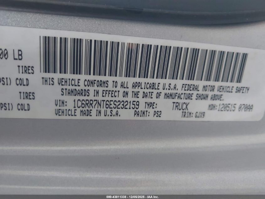 2014 RAM 1500 2014 року Бензин, 5.7, Полный привод, vin - 1C6RR7NT6ES232159 из США
