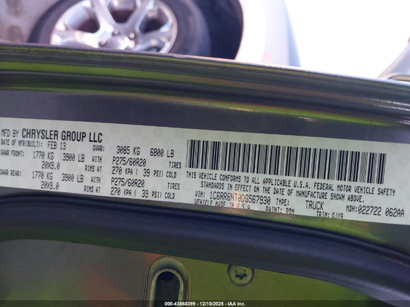 2013 RAM 1500 2013 року Бензин, 5.7, , vin - 1C6RR6NT0DS567930 из США