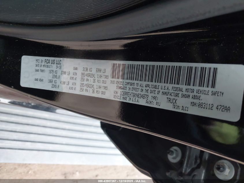 2019 RAM 1500 2019 року Бензин, 5.7, , vin - 1C6RREHT6KN634872 из США