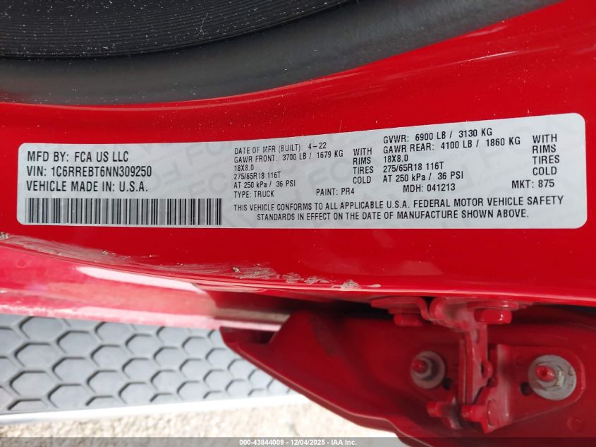 2022 RAM 1500 2022 року Бензин, 5.7, , vin - 1C6RREBT6NN309250 из США
