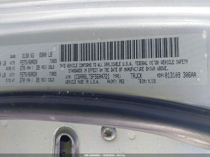 Цвет СеребряныйЦилиндры 8VIN 1C6RR6LT5FS604721Состояние СтационарноПовреждения Передняя или задняя AutoRIA
