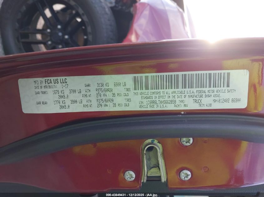 2017 RAM 1500 2017 року Бензин, 5.7, , vin - 1C6RR6LTXHS662858 из США