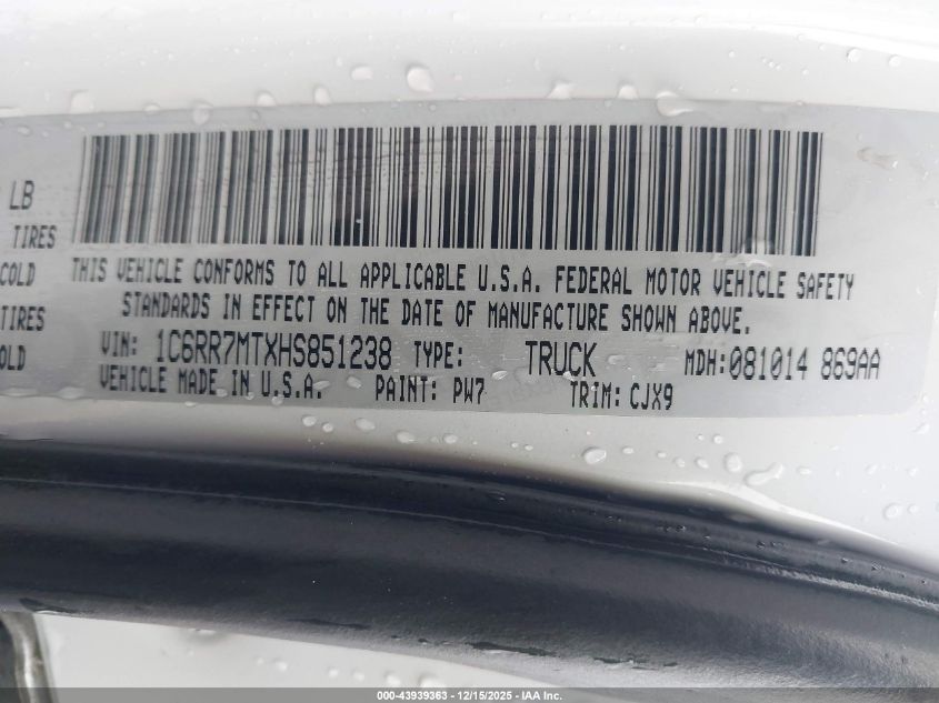 Цвет БелыйЦилиндры 8Привод Полный приводVIN 1C6RR7MTXHS851238Состояние Заводится и едет (проверено)Повреждения Левая сторона AutoRIA
