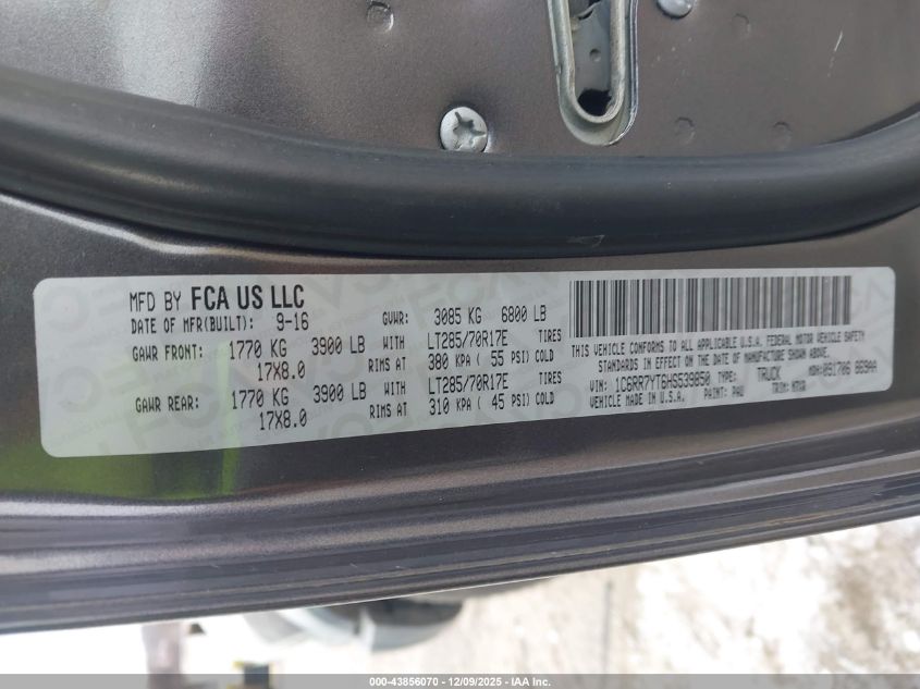 2017 RAM 1500 2017 року Бензин, 5.7, Полный привод, vin - 1C6RR7YT6HS539850 из США