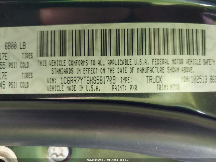 Цвет Цилиндры 8Привод Полный приводVIN 1C6RR7YT6HS581709Состояние НеизвестноПовреждения Неизвестно AutoRIA