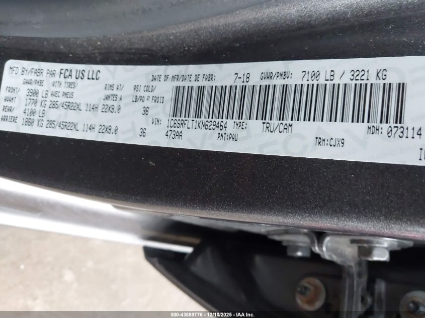 Цвет СерыйЦилиндры 8Привод Полный приводVIN 1C6SRFLT1KN629464Состояние Заводится и едет (проверено)Повреждения Левая сторона AutoRIA