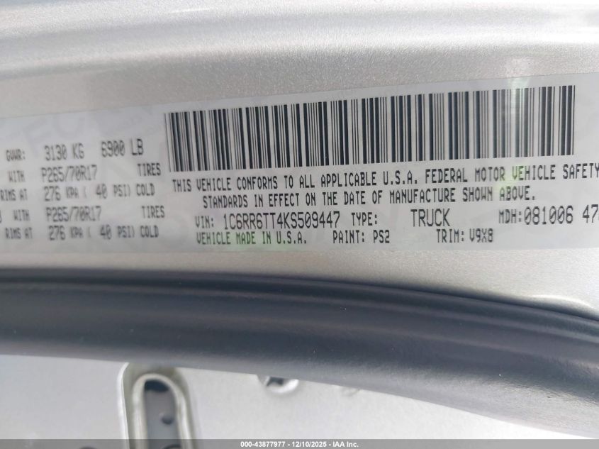 2019 RAM 1500 2019 року Бензин, 5.7, , vin - 1C6RR6TT4KS509447 из США