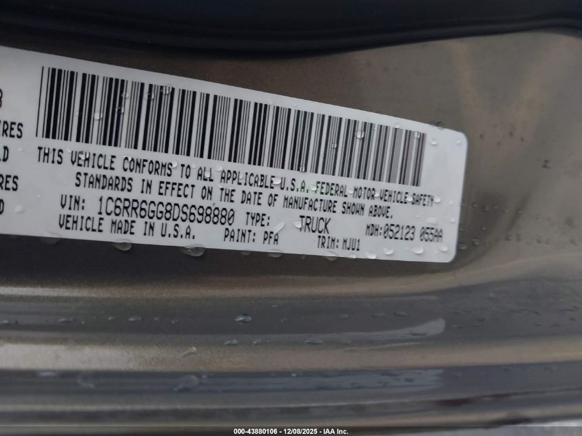 2013 RAM 1500 2013 року Бензин, 3.6, , vin - 1C6RR6GG8DS698880 из США