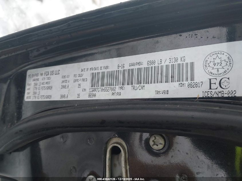 2017 RAM 1500 2017 року Бензин, 5.7, Полный привод, vin - 1C6RR7GT0HS527002 из США