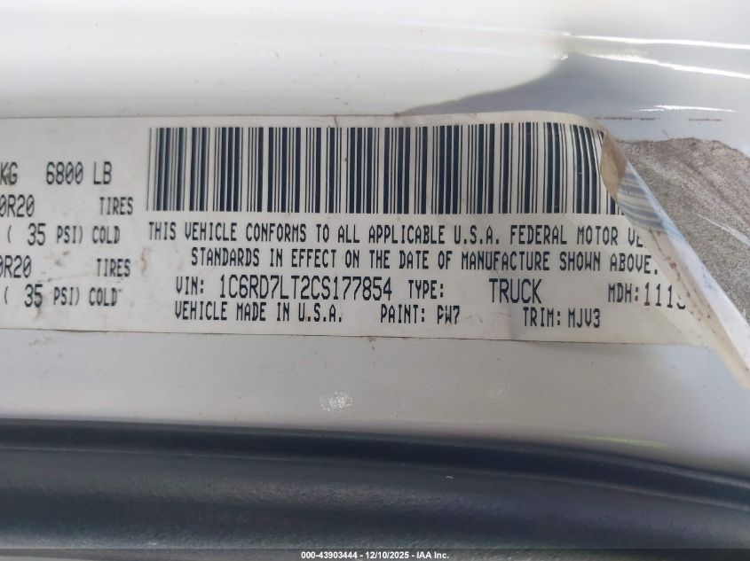 2012 RAM 1500 2012 року Бензин, 5.7, Полный привод, vin - 1C6RD7LT2CS177854 из США