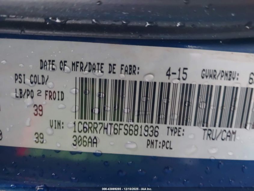 2015 RAM 1500 2015 року Бензин, 5.7, Полный привод, vin - 1C6RR7HT6FS681936 из США