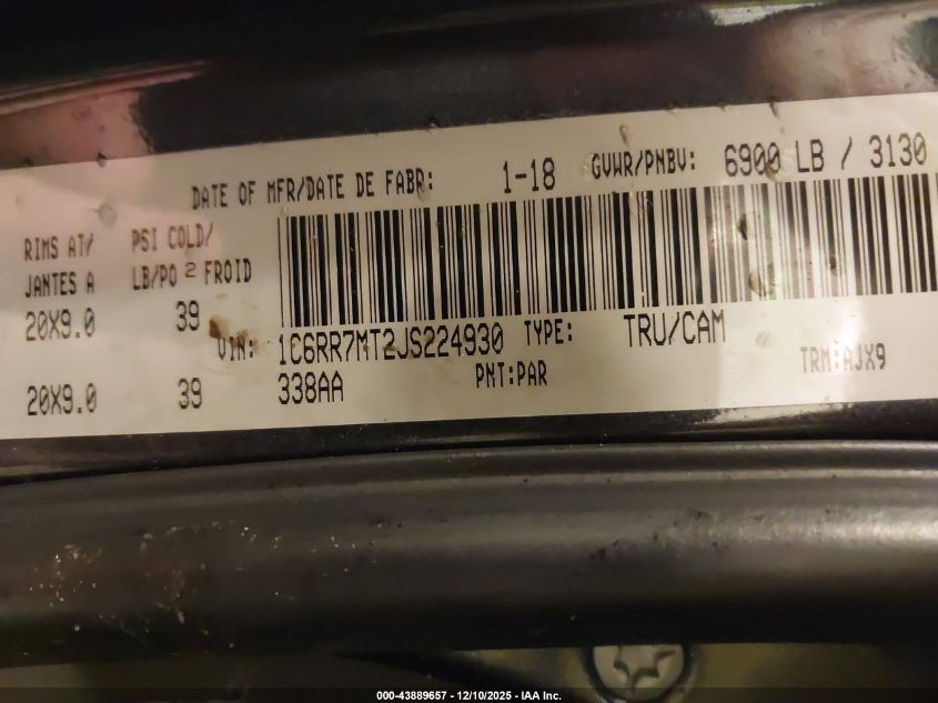 Цвет СерыйЦилиндры 8Привод Полный приводVIN 1C6RR7MT2JS224930Состояние Заводится и едет (проверено)Повреждения Задняя AutoRIA