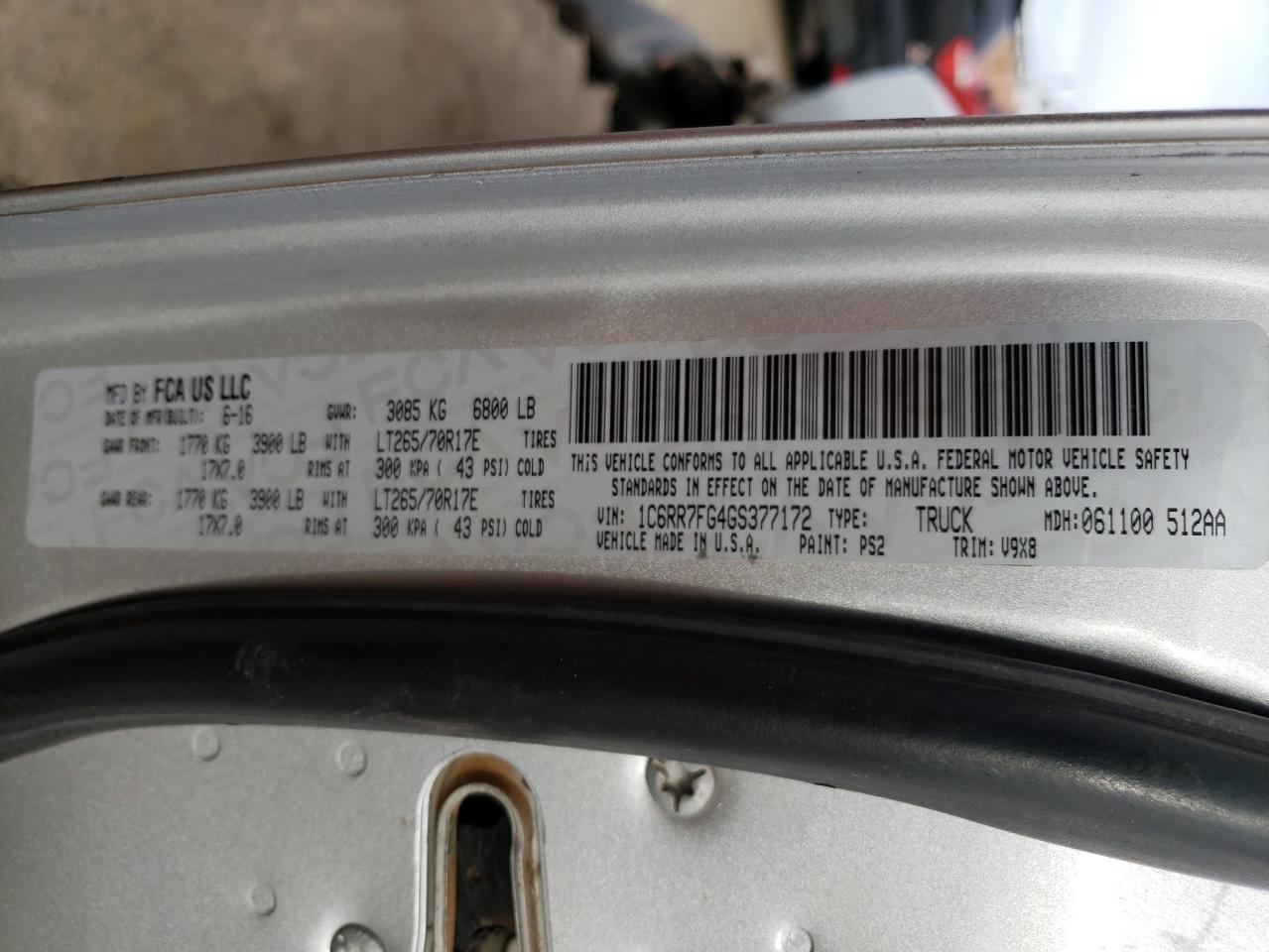 2016 RAM 1500 2016 року Бензин, 3.6, 4x4 с задним приводом, vin - 1C6RR7FG4GS377172 из США