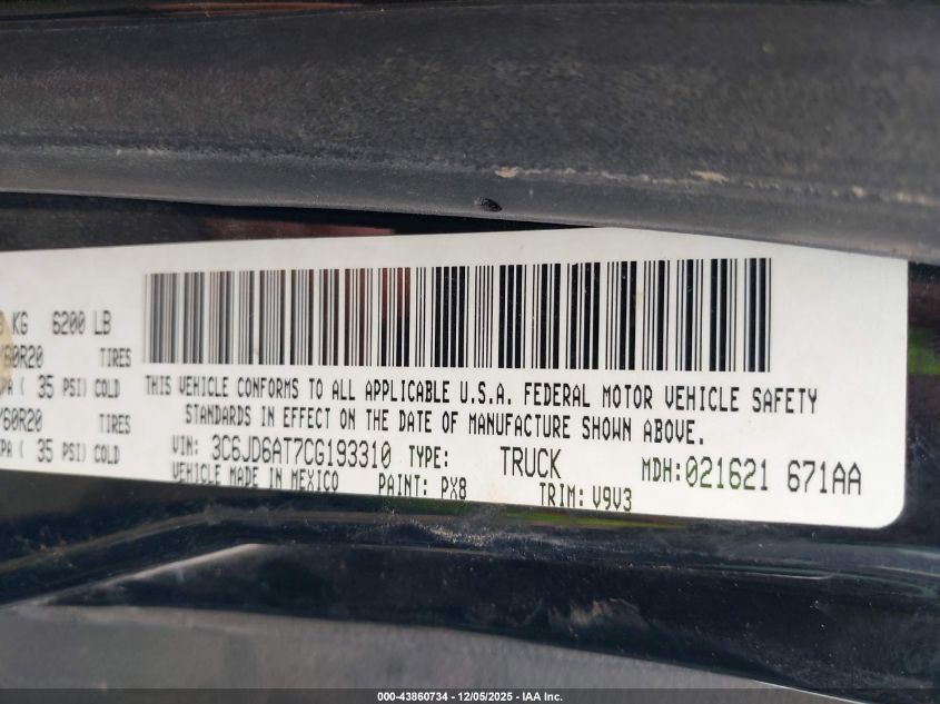 Цвет ЧерныйЦилиндры 8VIN 3C6JD6AT7CG193310Состояние СтационарноПовреждения Передняя и задняя