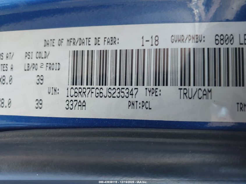 Цвет Цилиндры 6Привод Полный приводVIN 1C6RR7FG6JS235347Состояние НеизвестноПовреждения Неизвестно AutoRIA
