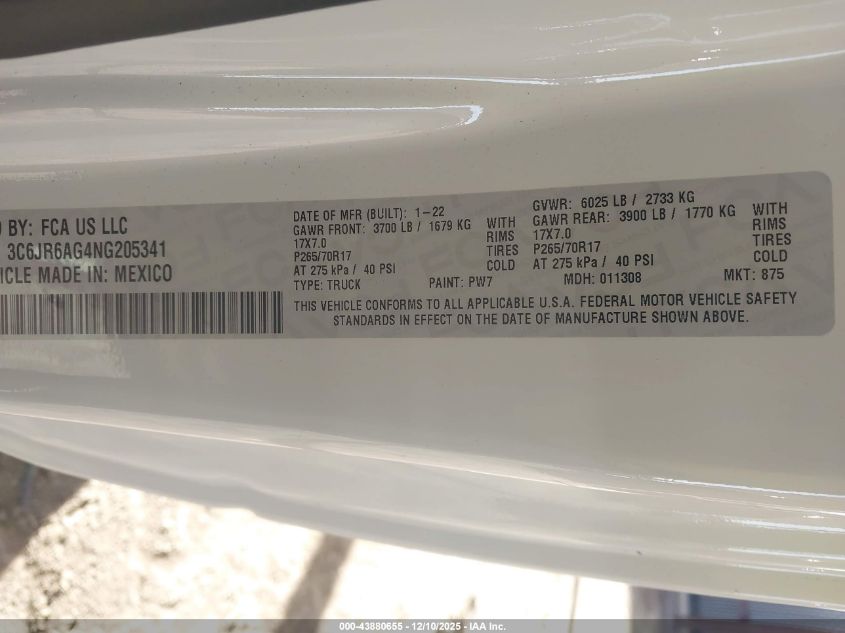 2022 RAM 1500 2022 року Бензин, 3.6, , vin - 3C6JR6AG4NG205341 из США