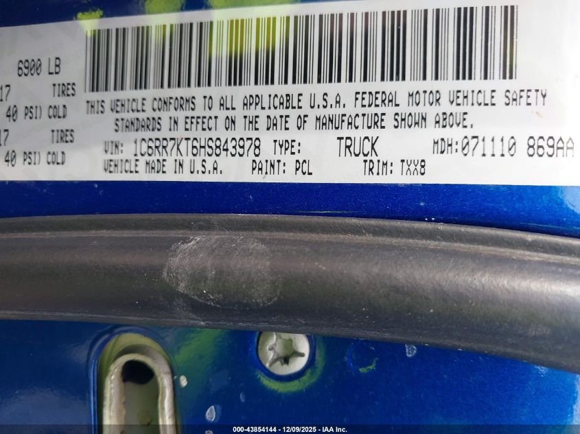 2017 RAM 1500 2017 року Бензин, 5.7, Полный привод, vin - 1C6RR7KT6HS843978 из США