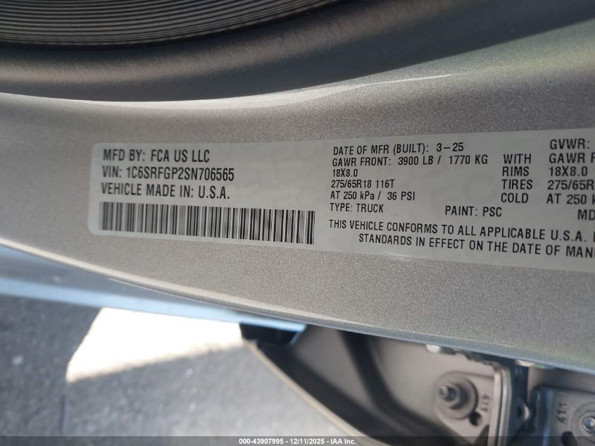 2025 RAM 1500 2025 року Бензин, 3.0, Полный привод, vin - 1C6SRFGP2SN706565 из США