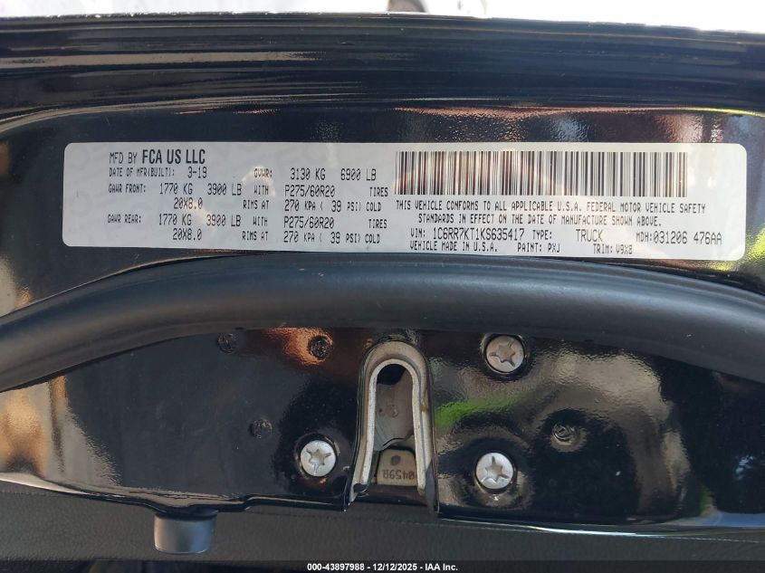 2019 RAM 1500 2019 року Бензин, 5.7, Полный привод, vin - 1C6RR7KT1KS635417 из США