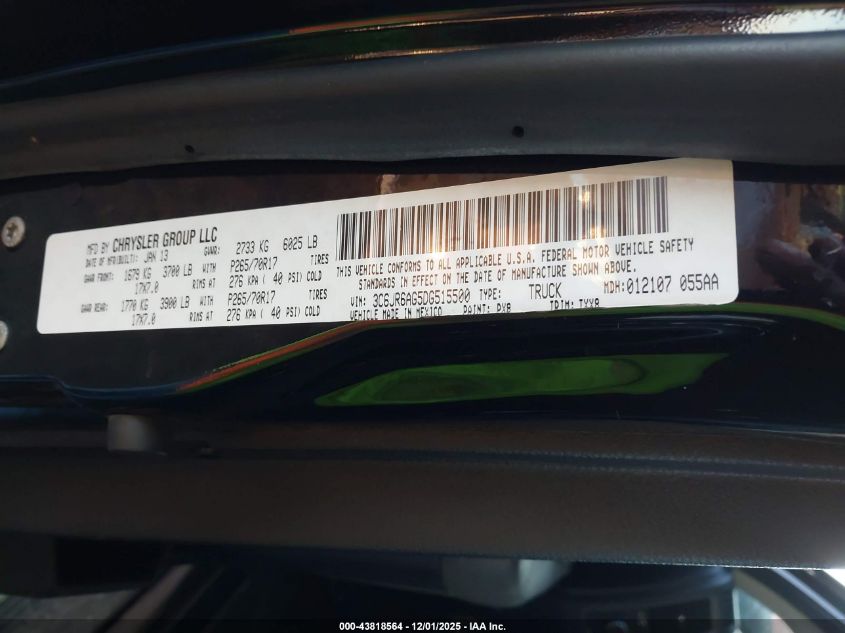 Цвет ЧерныйЦилиндры 6VIN 3C6JR6AG5DG515500Состояние СтационарноПовреждения Передняя или задняя