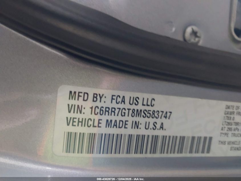 2021 RAM 1500 2021 року Бензин, 5.7, Полный привод, vin - 1C6RR7GT8MS583747 из США