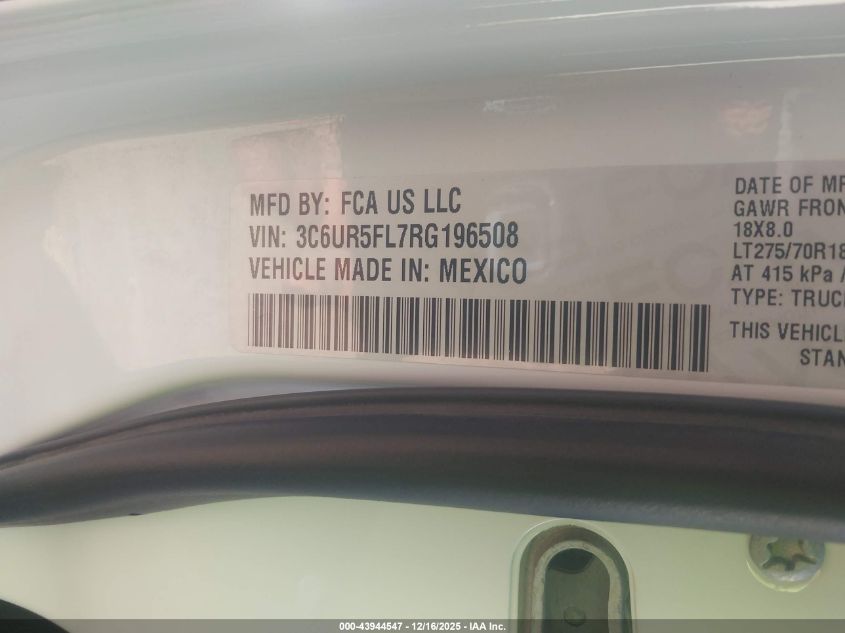 Цвет БелыйЦилиндры 6Привод Полный приводVIN 3C6UR5FL7RG196508Состояние Заводится и едет (проверено)Повреждения Передняя правая