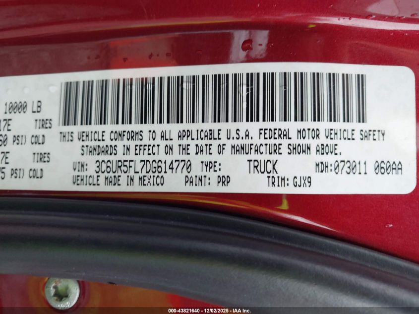 2013 RAM 2500 2013 року Дизель, 6.7, Полный привод, vin - 3C6UR5FL7DG614770 из США