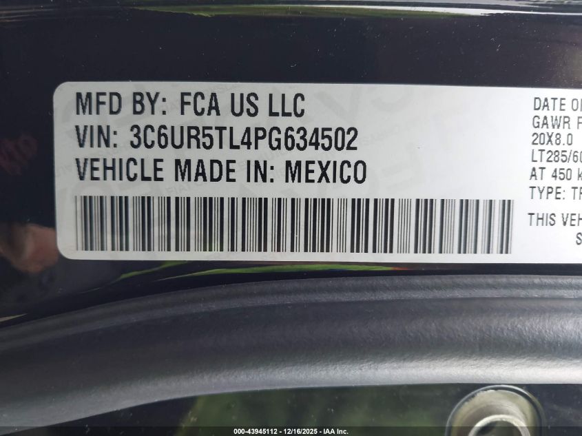 2023 RAM 2500 2023 року Дизель, 6.7, Полный привод, vin - 3C6UR5TL4PG634502 из США