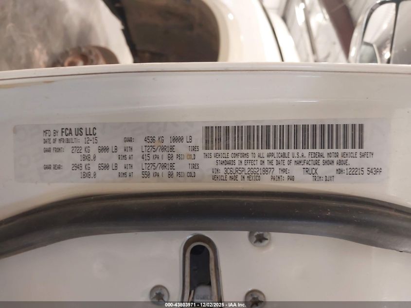 Цвет БелыйЦилиндры 6Привод Полный приводVIN 3C6UR5PL2GG218877Состояние НеизвестноПовреждения Левая сторона