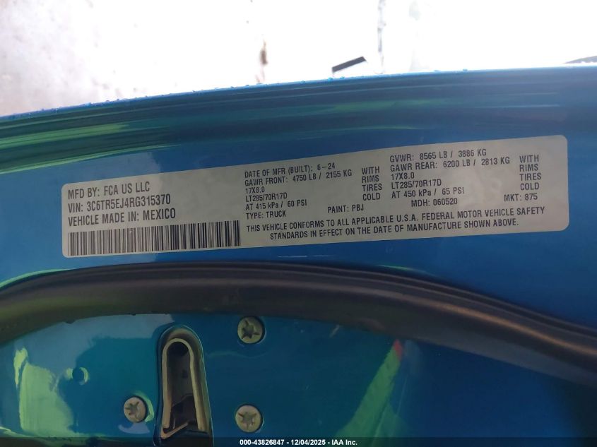 2024 RAM 2500 2024 року Бензин, 6.4, Полный привод, vin - 3C6TR5EJ4RG315370 из США