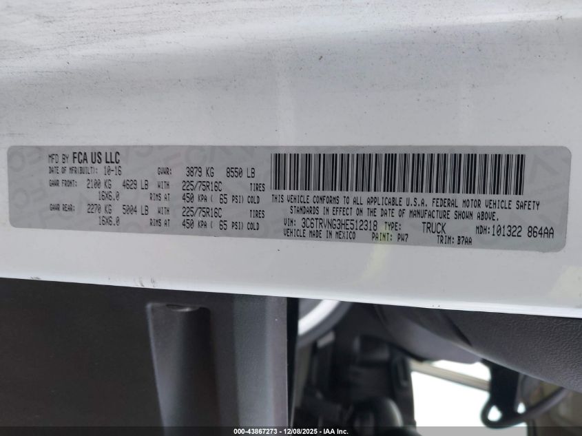 2017 RAM PROMASTER 1500 2017 року Бензин, 3.6, Передний привод, vin - 3C6TRVNG3HE512318 из США