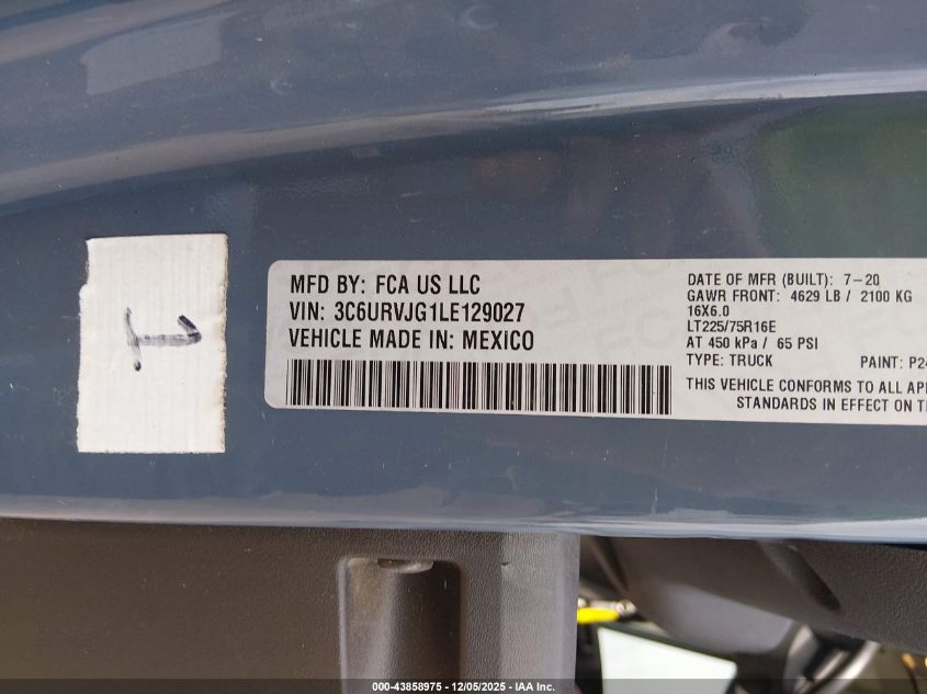 2020 RAM PROMASTER 3500 2020 року Бензин, 3.6, Передний привод, vin - 3C6URVJG1LE129027 из США