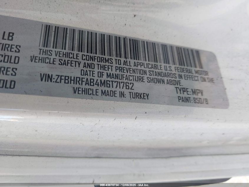 Цвет БелыйЦилиндры 4Привод Передний приводVIN ZFBHRFAB4M6T71762Состояние Заводится и едет (проверено)Повреждения Передняя или задняя